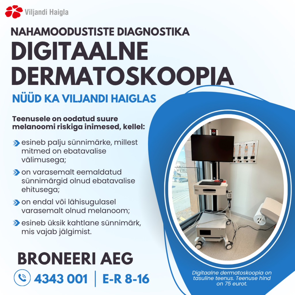 Viljandi haigla pakub uut, kaasaegset nahauuringu võimalust – digitaalset dermatoskoopiat, mis aitab märgata ohtlikke muutusi sünnimärkides varakult ja mugavalt.