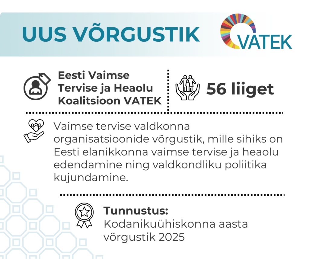 Eesti Vaimse Tervise ja Heaolu Koalitsioon (VATEK) on vaimse tervise valdkonna organisatsioonide võrgustik ja katusorganisatsioon, mille eesmärk on edendada Eesti elanikkonna vaimset tervist ja heaolu ning aidata kaasa valdkondliku poliitika kujundamisele. VATEK tegutseb avalikes huvides, koondades erinevaid organisatsioone, kes panustavad vaimse tervise teenuste arendamisse, teadlikkuse tõstmisse ja koostöö tugevdamisse.